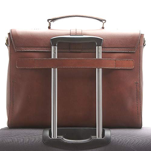 Otro maletín de aguacate que también se puede deslizar en el asa de su maleta trolley, el maletín firmado The Bridge en cuero marrón claro:
